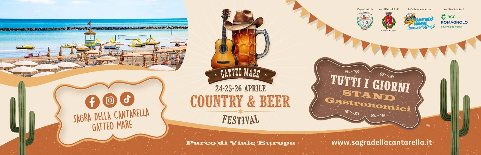 🤠 Torna a Gatteo Mare il Country & Beer Festival, uno degli eventi più coinvolgenti della primavera romagnola dedicato alla musica country, al ballo e alla convivialità. L’edizione 2026 si svolgerà dal 24 al 26 aprile nella nuova Area Eventi di Viale Europa, una location ampia e funzionale che permette di accogliere un pubblico sempre più numeroso.