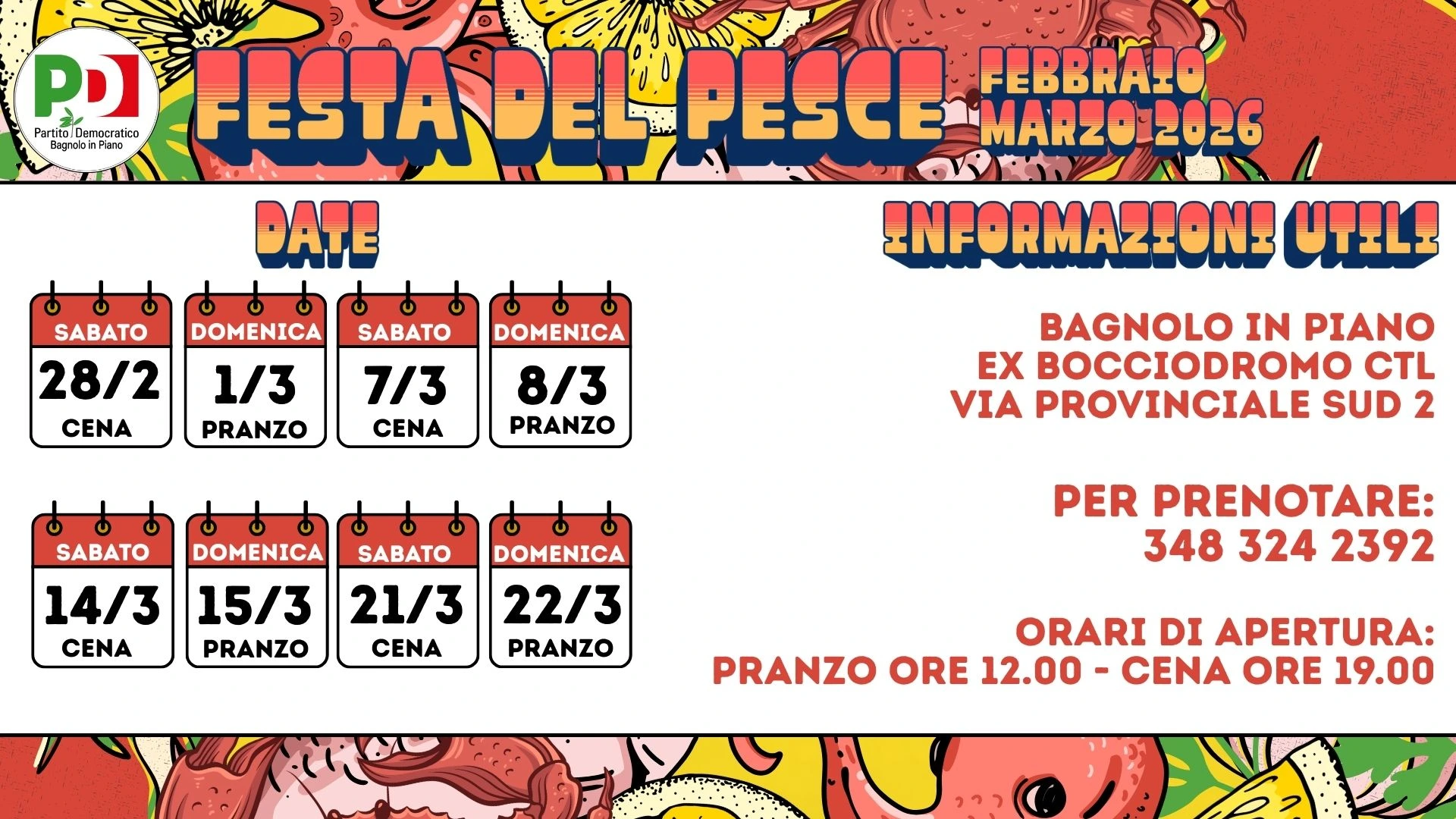 Amicizia, festa e voglia di stare insieme: sono questi gli ingredienti della Festa del Pesce di Bagnolo in Piano, uno degli appuntamenti più amati del territorio, che da oltre 25 anni richiama famiglie, gruppi di amici e appassionati di buona cucina.