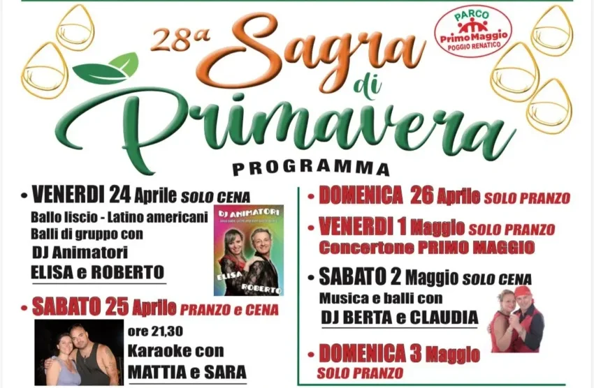 Con l’arrivo della bella stagione, Poggio Renatico si prepara ad accogliere uno degli appuntamenti più attesi del calendario locale: la Sagra di Primavera, un evento capace di unire il piacere della buona tavola, il divertimento e la voglia di stare insieme in un’atmosfera genuina e conviviale. Per due weekend consecutivi, il paese si trasformerà in un vivace punto d’incontro per famiglie, coppie e gruppi di amici che desiderano trascorrere momenti di festa tra profumi di cucina tradizionale e serate all’insegna della musica.